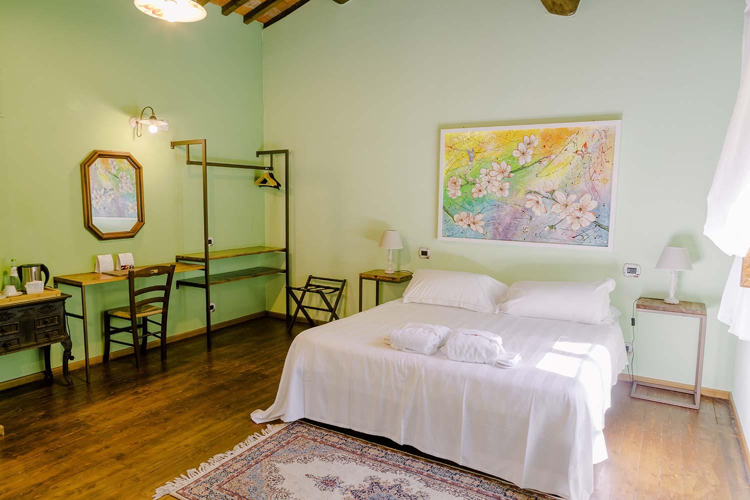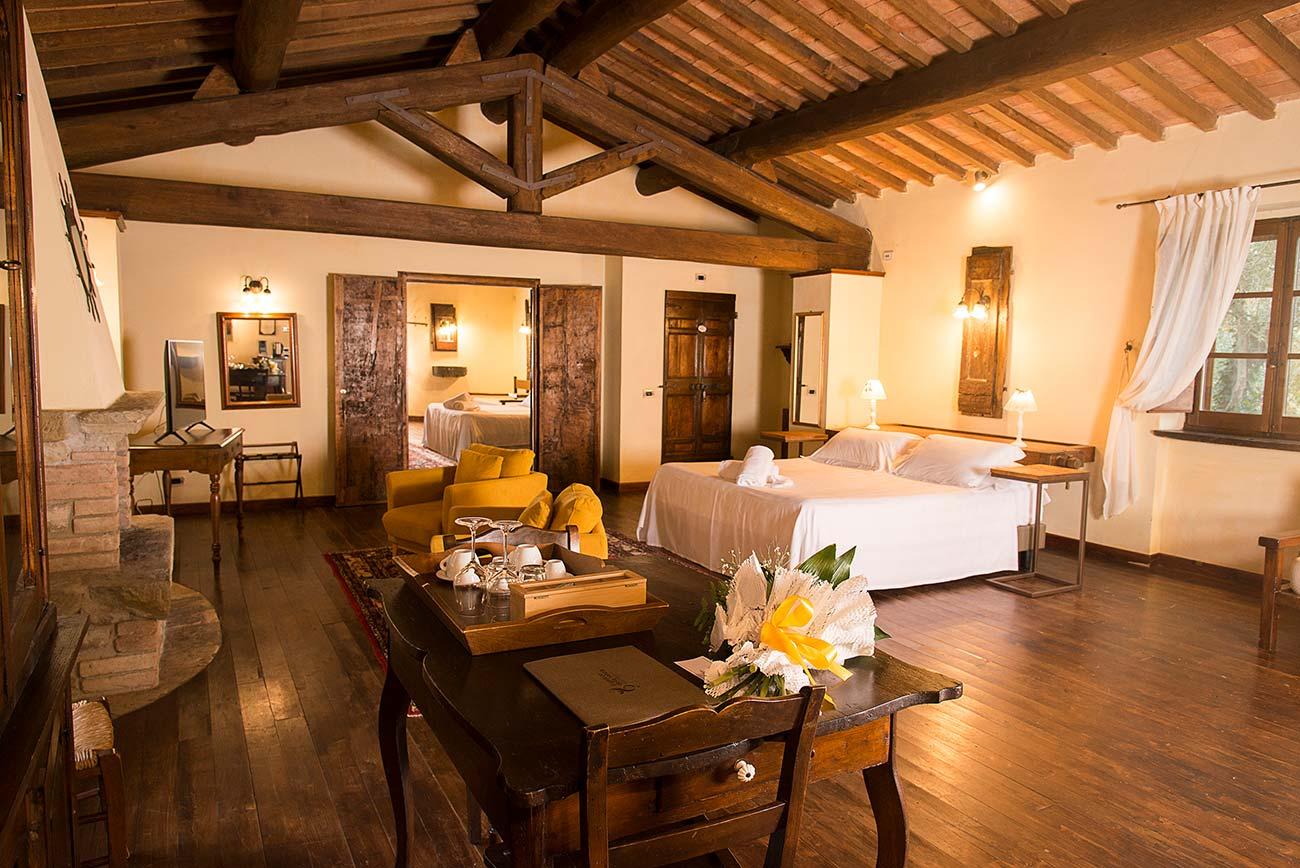 Il Cantico della Natura is a charming stone farmhouse located on the hills surrounding Lake Trasimeno. This enchanting retreat, elegantly furnished in 19th-century style, offers breathtaking views of the lake and the surrounding woodlands. Here, immersed in the tranquility of nature, you can enjoy a truly relaxing experience, far from the hustle and bustle of everyday life. The rooms at Il Cantico della Natura are designed to ensure maximum comfort and peace. With 20 bedrooms, each featuring a private bathroom, the property can accommodate up to 54 guests. Every room boasts a lovely view of the surrounding landscape and offers modern amenities such as a flat-screen TV, kettle, coffee machine, minibar, extra pillows and blankets, and a private bathroom with shower, bathtub, WC, bidet, and complimentary toiletries. Accessibility is also guaranteed for guests with disabilities, thanks to step-free entrances. Il Cantico della Natura provides a wide range of services to make your stay even more enjoyable. Guests can savor typical local dishes at the on-site restaurant, unwind in the spa with whirlpool, or take a refreshing dip in the swimming pool. Wireless internet access is available throughout the property, and all rooms are equipped with air conditioning, a safe, and a minibar. Private parking is available for those arriving by car. A baby cot can be requested, and guests may enjoy outdoor dining or book massage treatments. The location of Il Cantico della Natura is ideal for those seeking an escape from daily routine immersed in nature, as well as for guests wishing to explore the historical and artistic treasures of Umbria and the surrounding regions. Thanks to its strategic position, the farmhouse is easily reachable from art cities such as Perugia, Assisi, Siena, Cortona, and Florence, making it the perfect base for excursions and sightseeing.